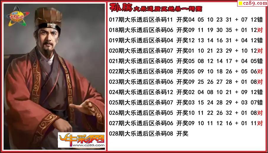 > 大乐透028期孙膑后区绝杀一码图