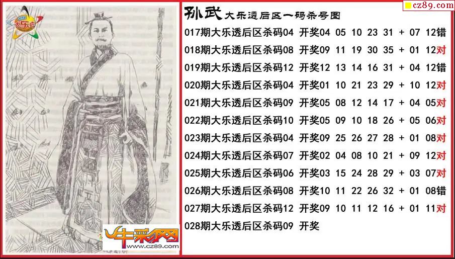 大乐透028期孙武后区一码杀号图